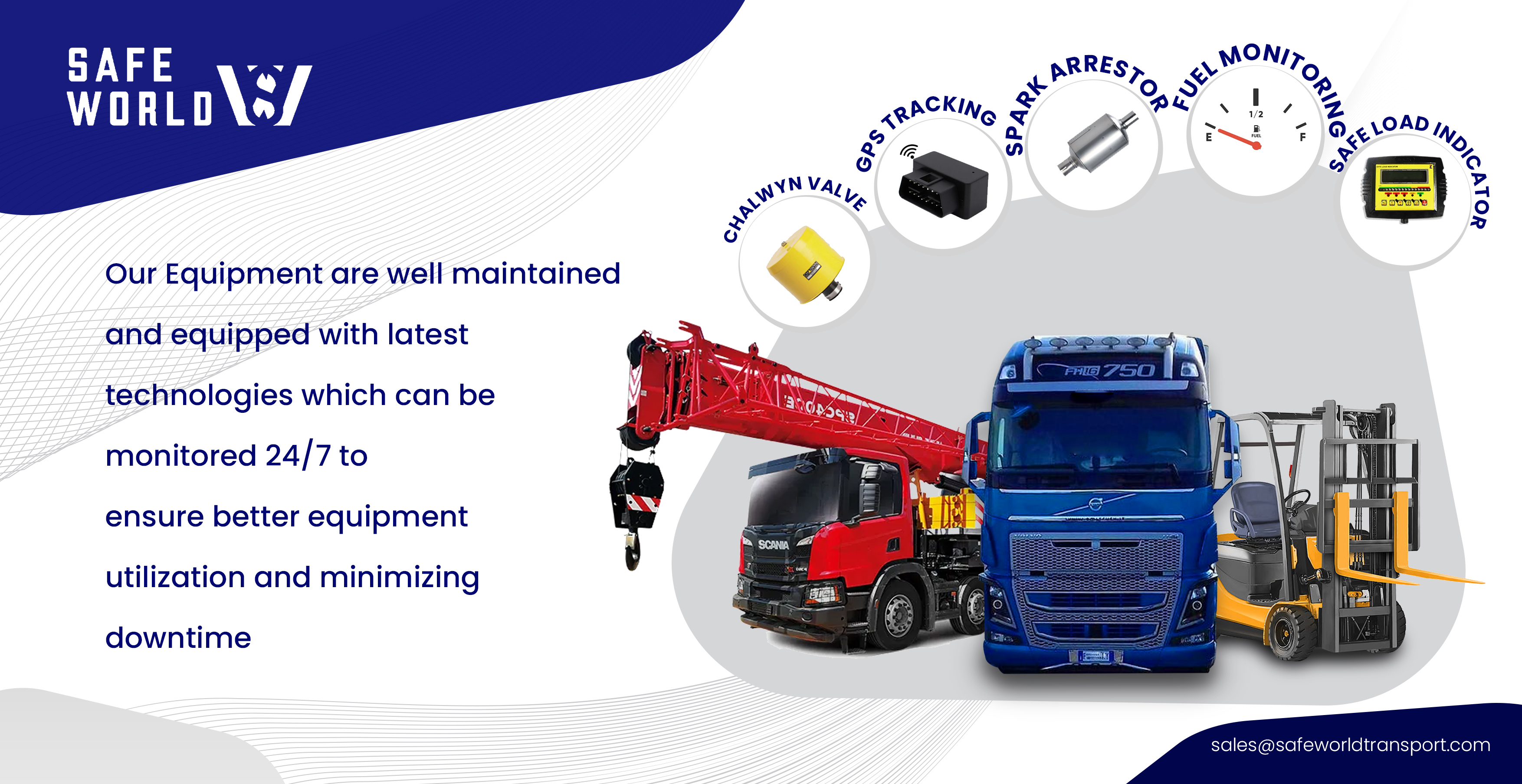 We at Safe World Transports provide fleet of transport equipment to transport small and large Machineries and all types of construction materials.
