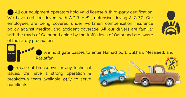 We provide efficient transportation services, including flatbed, trailer, side body trailers, lowbed trailers, pickups & box pick ups of various capacities, ensuring timely and safe delivery of goods across Qatar. Our service combines several kinds of transportation: road, maritime, fluvial, railways.